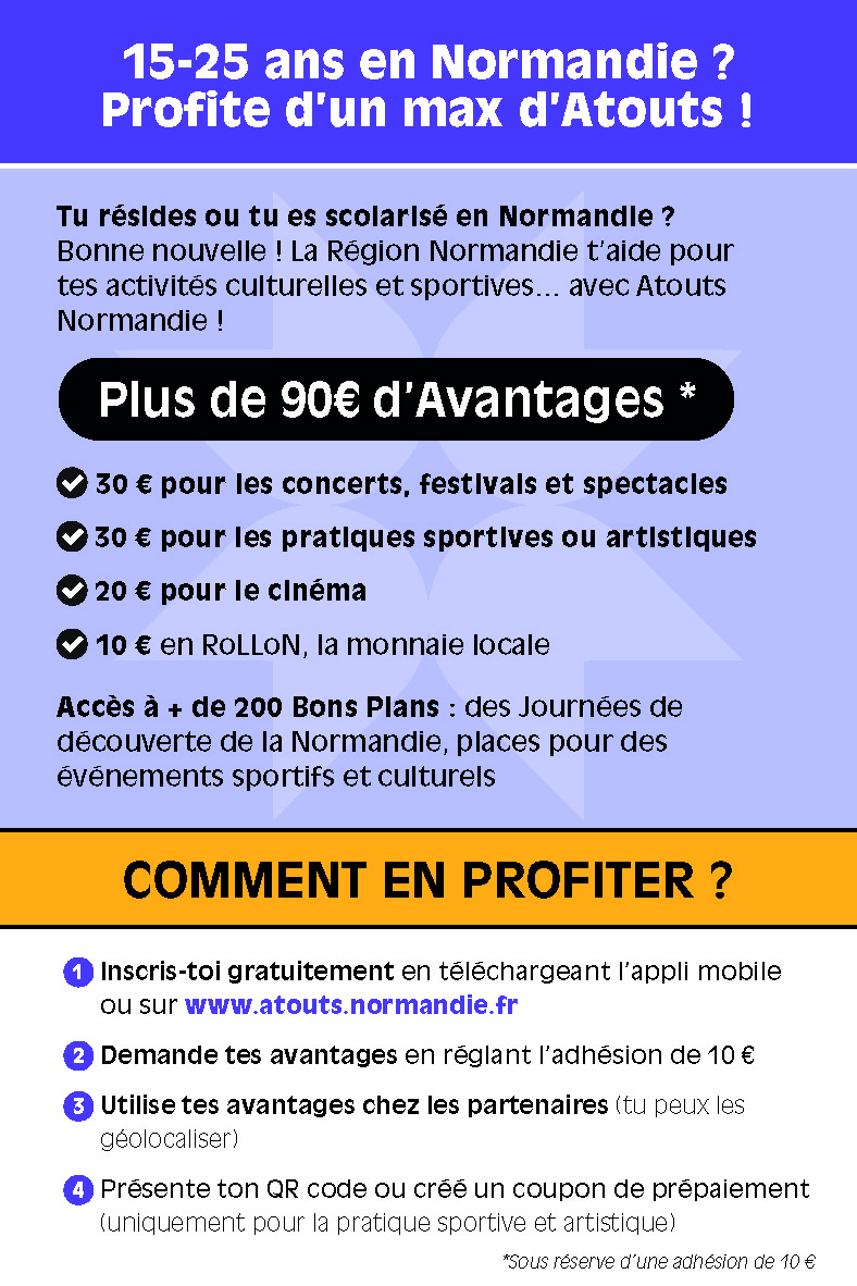 Pour les jeunes éligibles au dispositif Atouts Normandie, vous devez créer un coupon de prépaiement au préalable et valider le code de réduction ATOUTS pour un paiement en ligne.